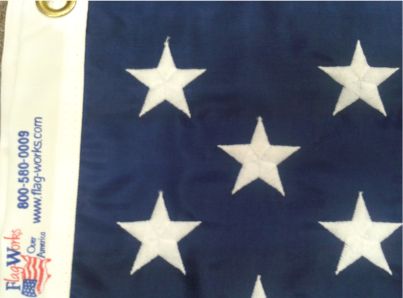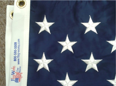 Cotton American Flag Fabric- For a more "classic look" try our cotton American flag. Though not as fade resistant as the others, this flag has an appeal of it's own. Our cotton American flags also, feature full filled embroidered stars and beautifully sewn stripes to display a strong sense of American pride.